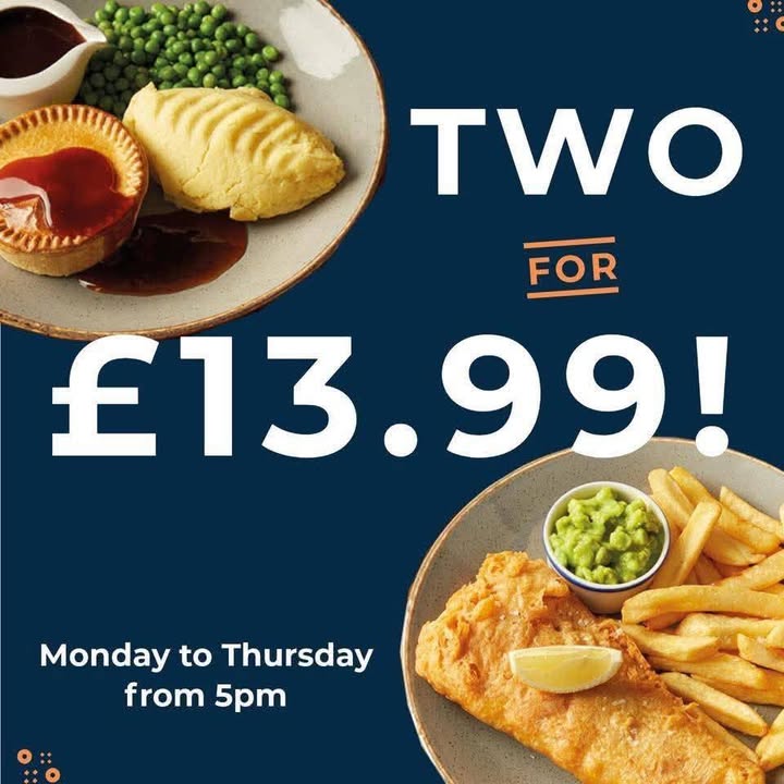 Between Monday & Thursday, you can order a child’s main meal for just £1 when purchased alongside any adult main meal!