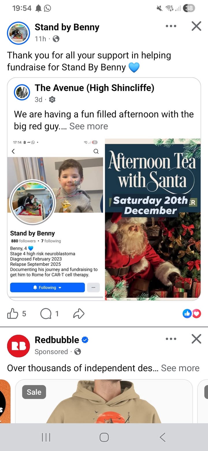 Dont forget our atternoon tea at 1.30pm on Saturday in aid of stand by benny raffle tickets are on sale behind the bar let's raise loads of money for this little boy. £5 entry